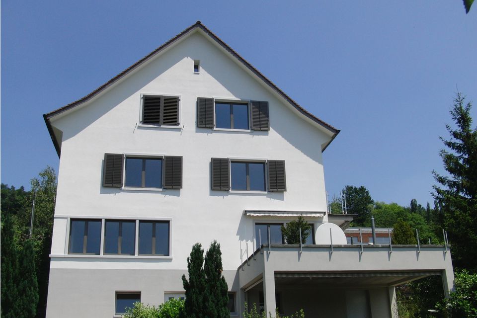 Das 1933-1934 erbaute stattliche Wohnhaus am Südhang des Rebbergs in Wülflingen wurde Innen renoviert und den Bedürfnissen angepasst (neue Wohnküche, neue Installationen) sowie einer umfassenden energetischen Sanierung unterzogen (Isolation von Dach, Kellerdecke, Fassade, neue 3-fach verglaste Fenster). Um die Fassade möglichst nicht zu verändern (gleichbleibendes Fensterlicht, gleiche äussere Leibungstiefe), wurden die Fenster um die Isolationsstärke nach Aussen versetzt sowie neue wärmegedämmte Gewände eingebaut.